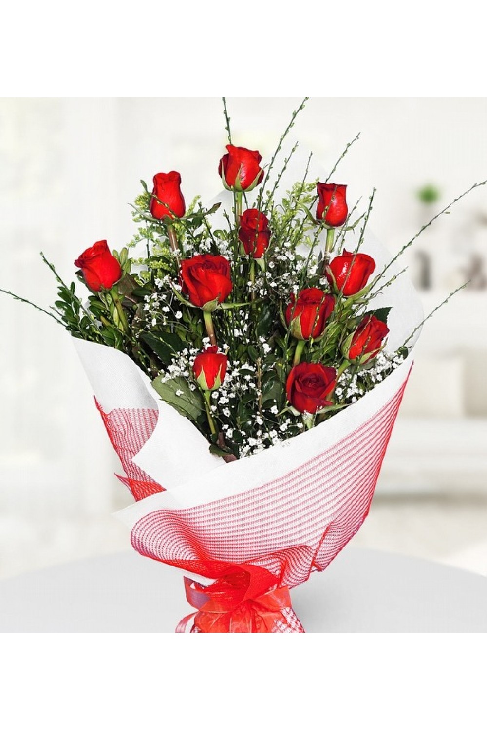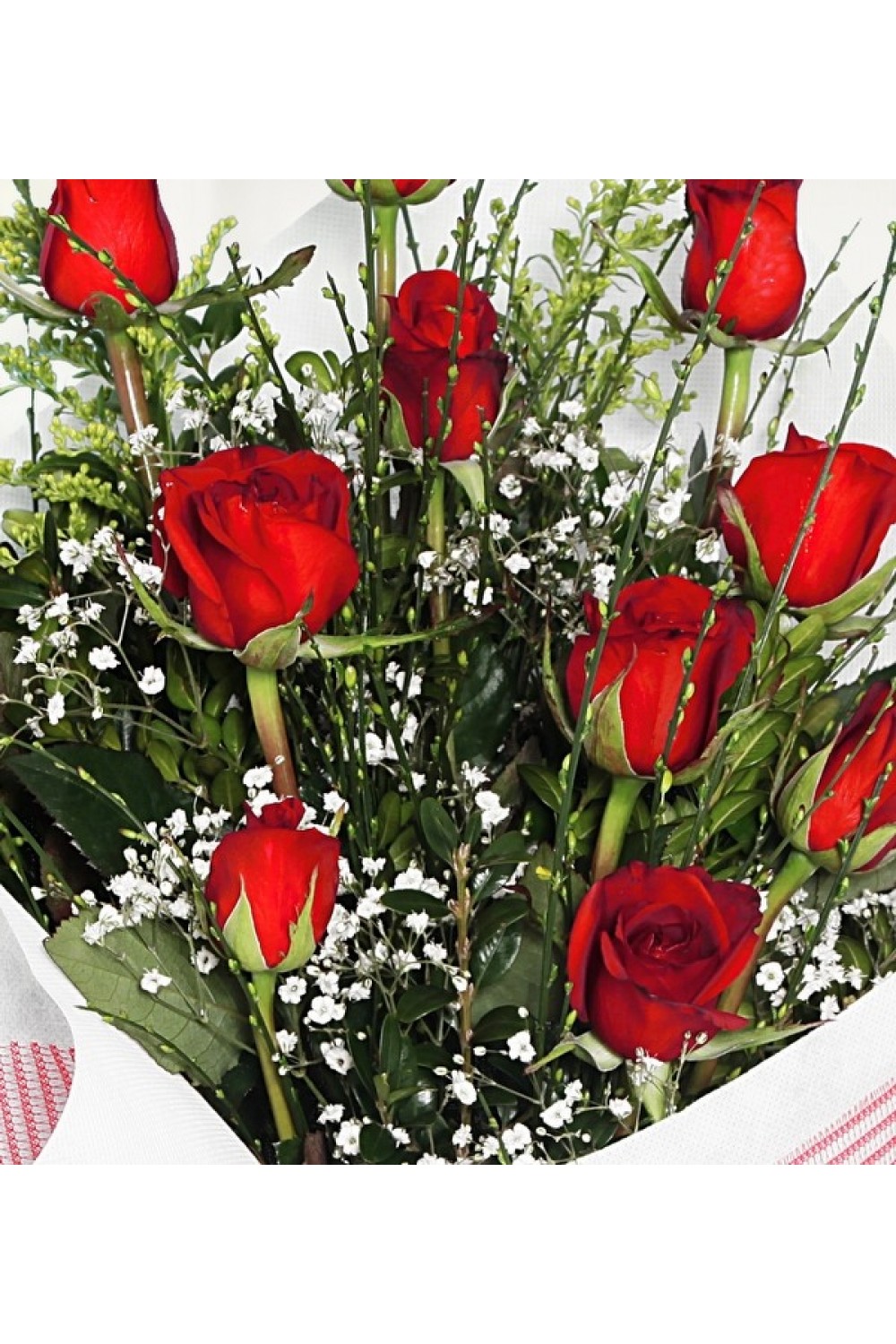 Kalpten gelen en sevgi, kırmızı güllerin büyüleyici güzelliğiyle anlam kazanır. 11 Adet Gül Buketi, romantizmin en sade ve etkili haliyle karşınızda! Kırmızı güllerin tutkulu dokunuşu, cipsofilyaların narinliği ve taze yeşilliklerin doğal estetiği ile tamamlanan bu tasarım çiçek, göz alıcı bir buket oluşturur.
