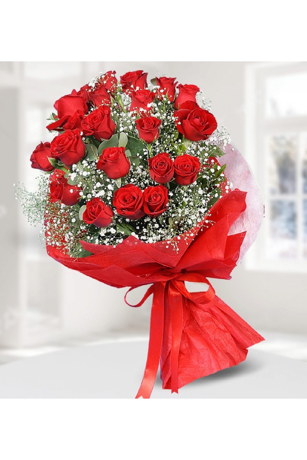 Eşsiz tasarımı ile 21 Kırmızı Gül, birbirinden taze ve canlı kırmızı güllerden oluşan şık bir buket çiçeğidir. Buketin yaklaşık yüksekliği 35 - 45 cm boyutlarındadır.