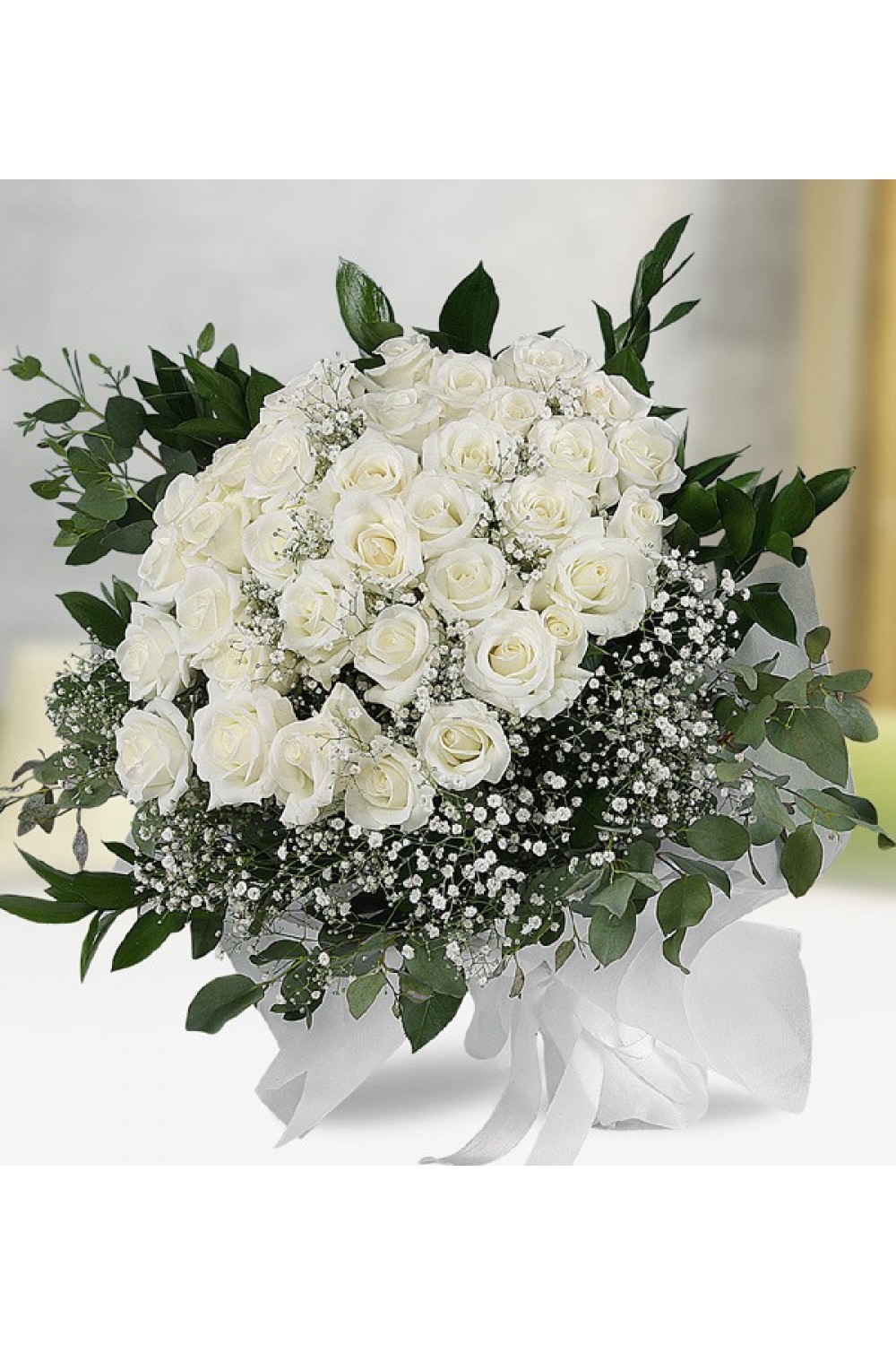 Şık sunumu ile 41 Beyaz Gül, birbirinden taze ve canlı güllerden oluşur. Buketin yaklaşık yüksekliği 35 - 45 cm boyutlarındadır.